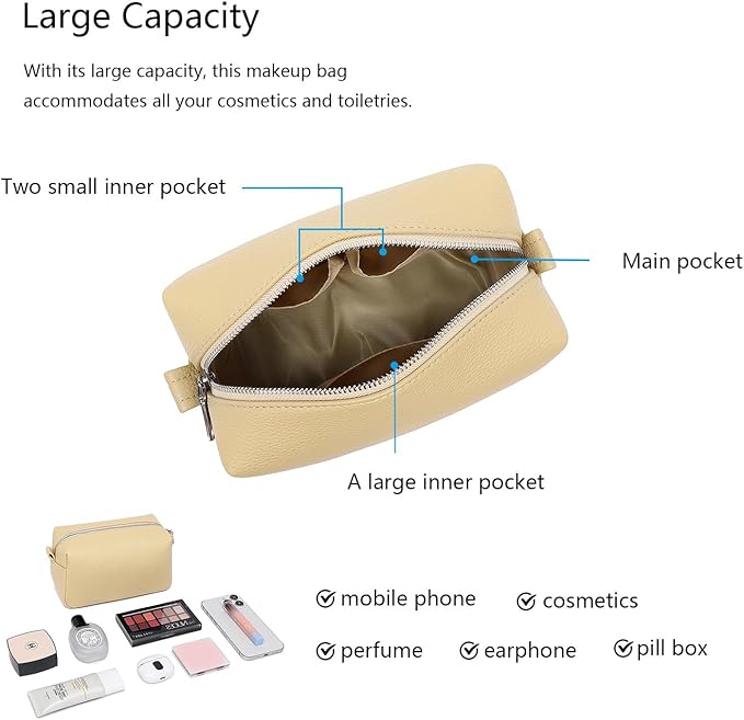 - 【High-Quality Material】Crafted from premium pu leather material,this bag is not only soft and lightweight, but also durable and long-lasting, ensuring your cosmetics stay safe and secure.