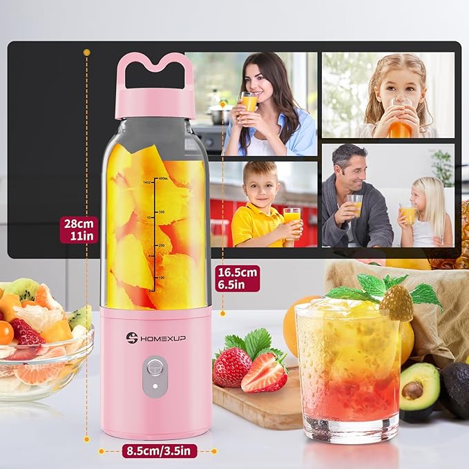 2PCS Portable Personal Blender 17 OZ/500 ML Juicer, 175W Personal Size Blender, Ideal for Smoothies, Ice Blending, Juicing, and Food Processing, Compact, Convenient, and Versatile (Pink&Blue)