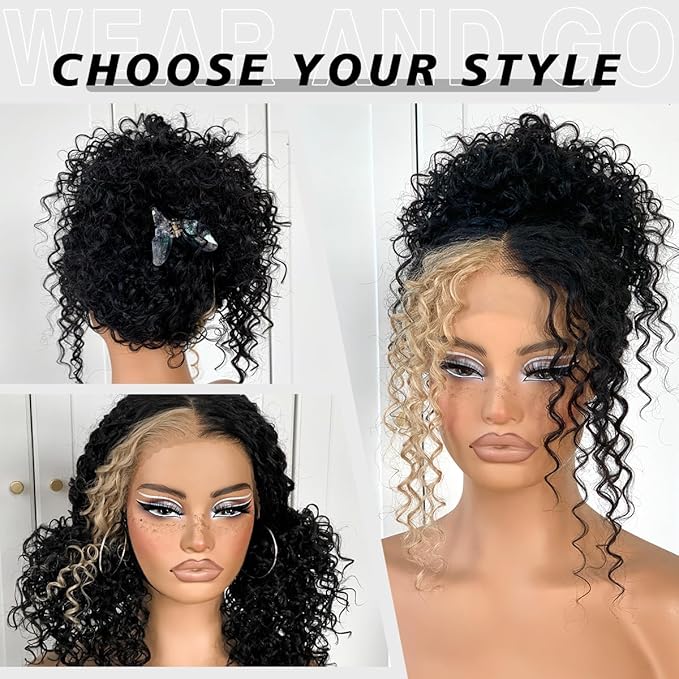 13x6 Skunk Stripe Curly Wig Wear And Go Glueless Wig Pre-Plucked Synthetic Lace Front Wig Pre-Cut Afro Kinky Layred Wig With Natural Hairline 18 Inch