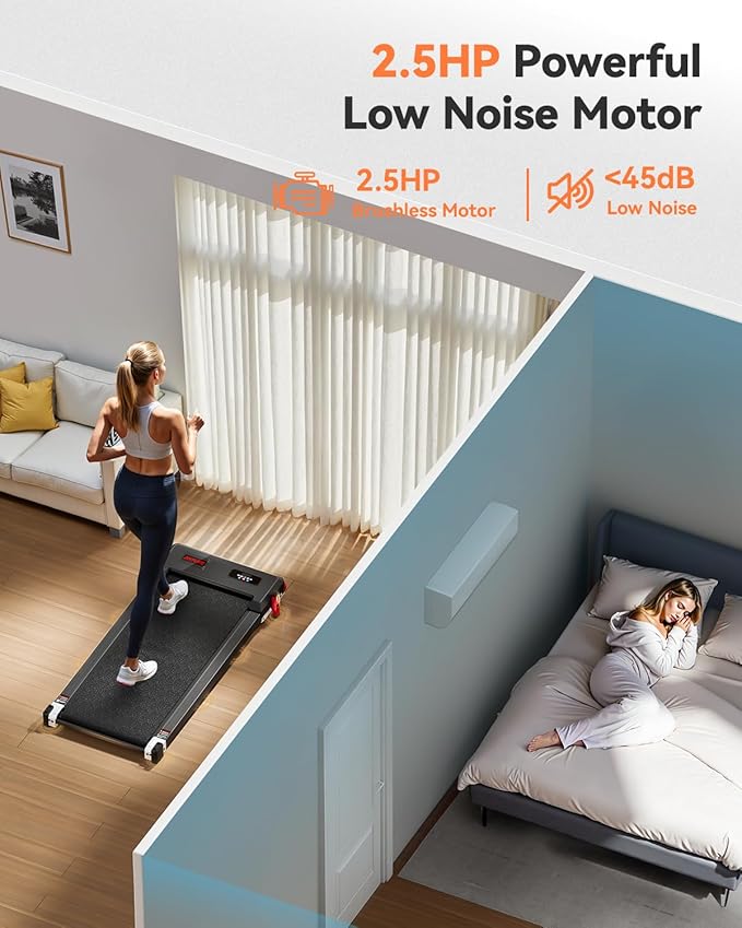- 2.5HP HIGH POWER MOTOR: Anylife treadmill is equipped with a 2.5HP high power motor, which can exercise at a speed of 0.6-4MPH, and can withstand up to 330lbs capacity. The volume generated when using this treadmill is no more than 45db, even in the late night, it will not disturb your neighbors and family