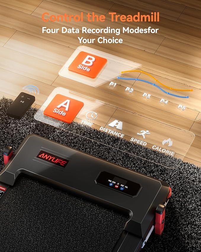 - All-in-1 Multi Function Treadmill: Anylife walking treadmill have a speed range of 0.6 -3.8mph, 0.6-1.5mph for walking, 1-2.5mph for jogging, and 3-4mph for running, satisfy your different exercise needs. Equipped with a remote control,change the running speed without having to bend down