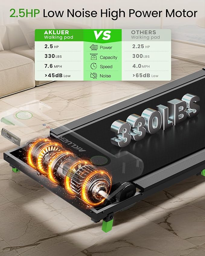 - Non-Assembly & Space Save Design: AKLUER walking pad comes fully assembled and is ready to use after unpacking. Built-in transport wheels make this home treadmills easy to move, you can place it under your bed or sofa to save space.We promise to offer 12 months satisfactory service to every customer. If you have any questions, please contact us