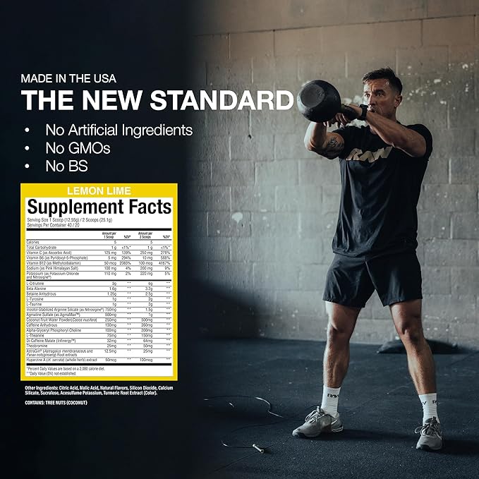 - Lemon Lime Thavage Pre-Workout: Introducing RAW Nutrition’s Thavage Pre-Workout – formulated with a blend of high-quality natural ingredients like caffeine, beta-alanine, and L-citrulline, Thavage provides a potent boost of energy and focus to help you push through even the toughest workouts. 40 servings, 18.34 oz.