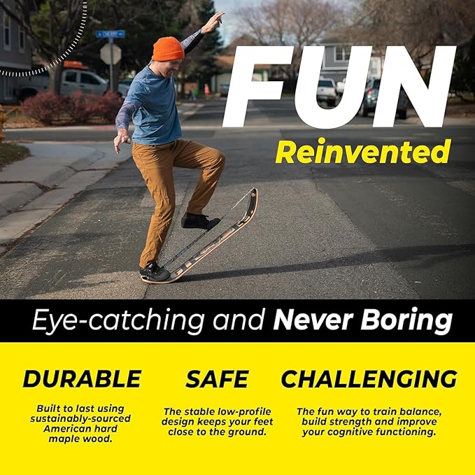 - SAFE FOR ALL AGES & SKILL LEVELS: Designed with a stable, low-profile slackline board system, this wooden balance board keeps you close to the ground for safer training. With no metal or moving parts, it's an ideal kids balance board and perfect for adults in any home workout routine.