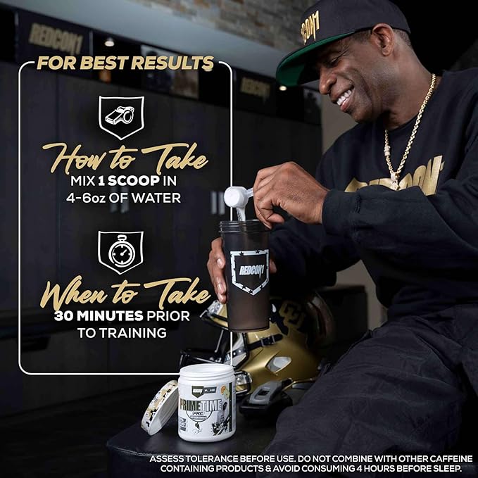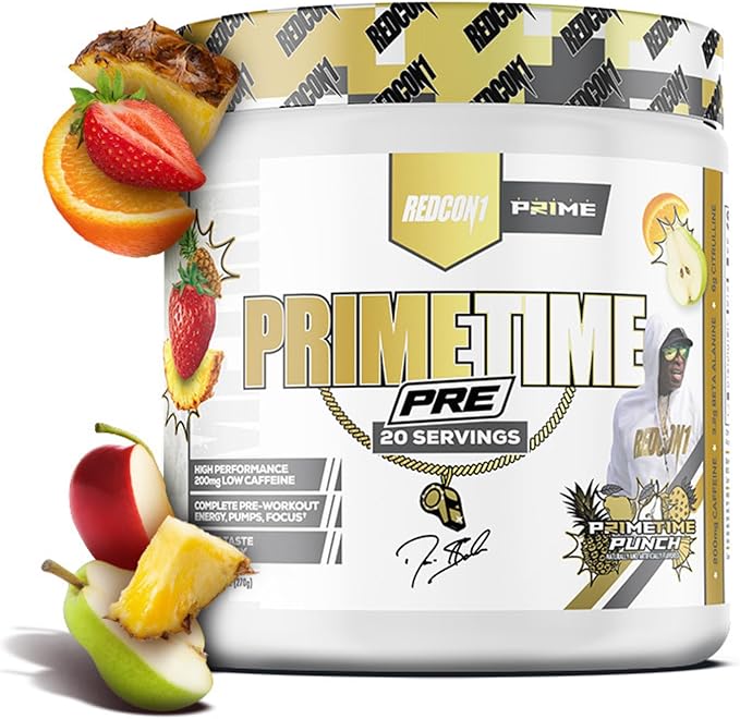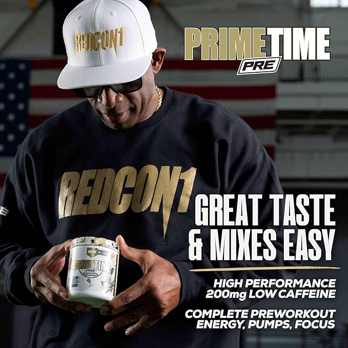 REDCON1 Low Caffeine Pre Workout Powder for Men & Women - Coach Prime Time Pre - with Beta Alanine - Prime Time Punch (20 Servings)