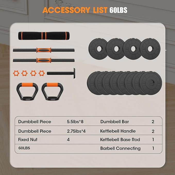 • 【4 in 1 Multifunctional Dumbbell Set】With the adjustable dumbbell set, it can boost your home workout level. Easily transform it into dumbbells, barbells, kettlebells, and push-up bars, switch exercise modes as you like. A 4-in-1 dumbbell set can meet your home gym needs and enjoy multi-faceted fitness