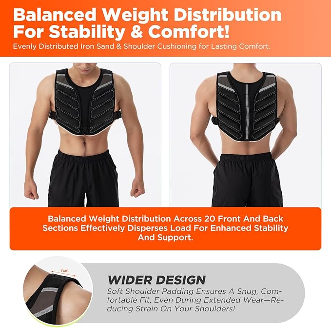 - ✅ 【Leak-Proof Iron Sand Filling 】Each weight pocket is securely sealed to prevent sand leakage. Constructed with high-quality, durable materials, this weighted vest is built to last, providing long-term reliability for both indoor and outdoor workouts, including cycling and endurance training.
