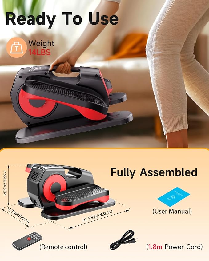 - Ergonomic Handle for Easy Portability's Under Desk Elliptical: Designed with seniors and all users in mind, our ergonomic handle makes lifting and moving the elliptical effortless, Lightweight yet sturdy, it’s perfect for seamless portability and user-friendly operation