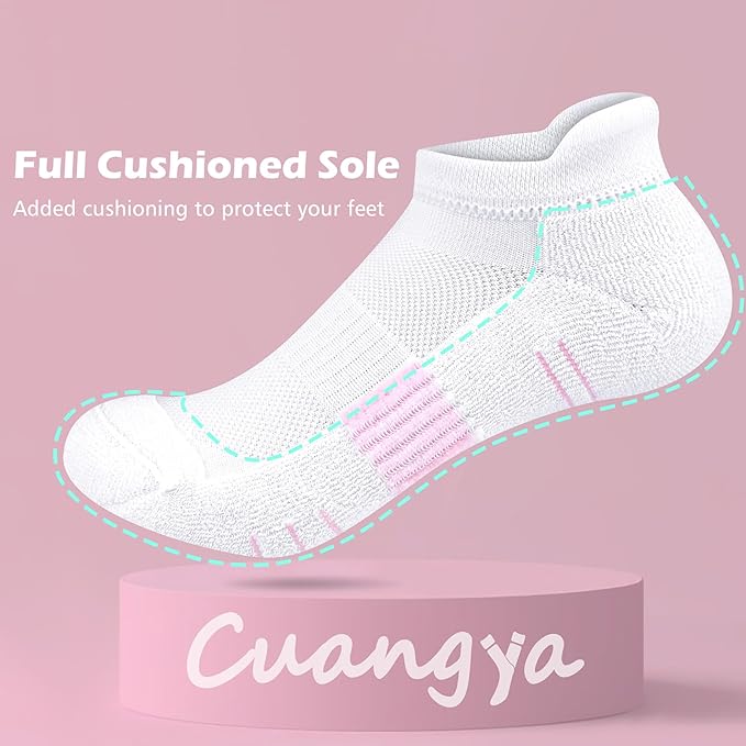 - Fully Cushioned Sole - Our women's athletic socks have extra padding at the toe and heel, providing effective cushioning to prevent blisters and reduce impact and friction during exercise. You'll be light on your feet while running and enjoy safe protection for any sport.