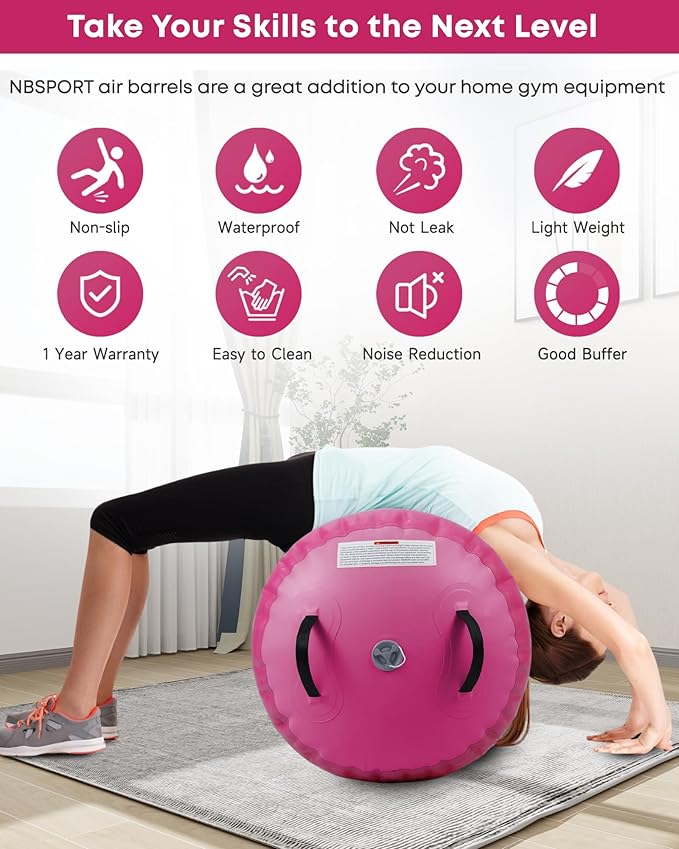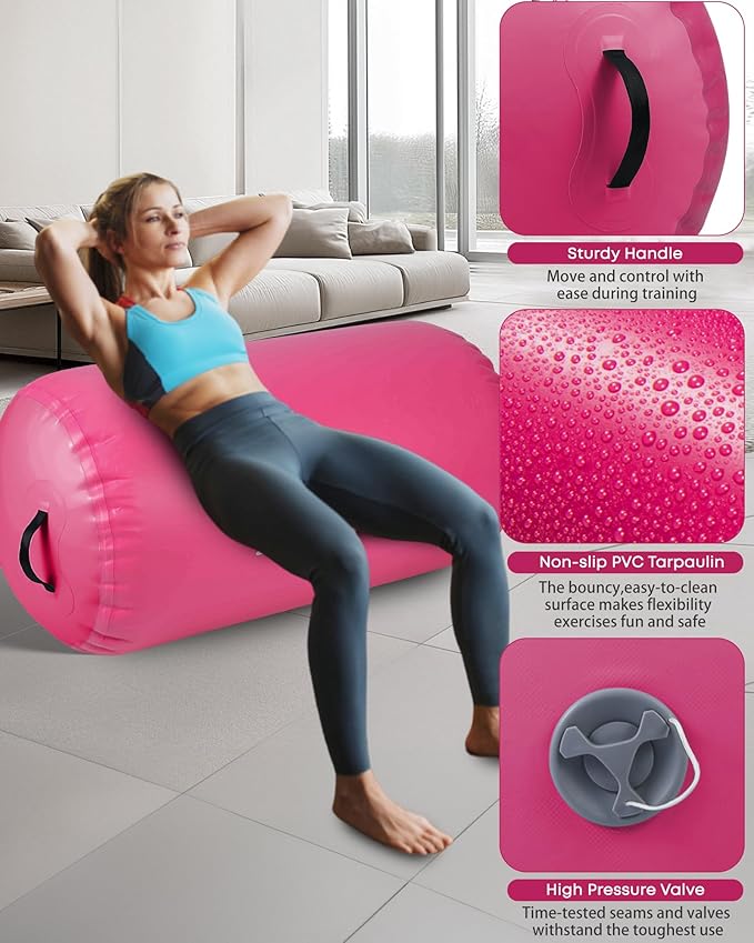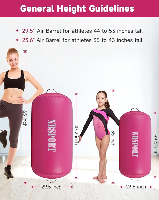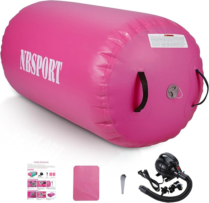 Air Barrel - Air Roller Gymnastics Barrel for Back Handspring Trainer, Air Track Tumble Mat with Pump for Gym Training/Yoga Balance Exercise/Cheerleading/Home and Outdoor Use