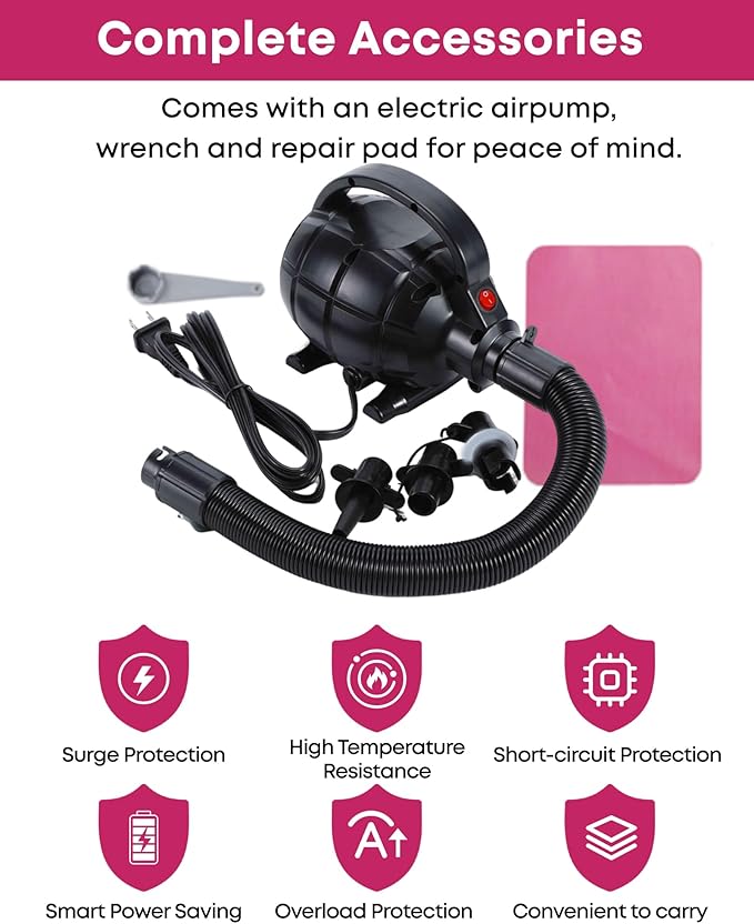- ⭐【COMPLETE KIT, LIFETIME SUPPORT】Includes electric pump + repair patches. Fix punctures in minutes and enjoy lifelong durability. (Backed by a 1-year warranty!)