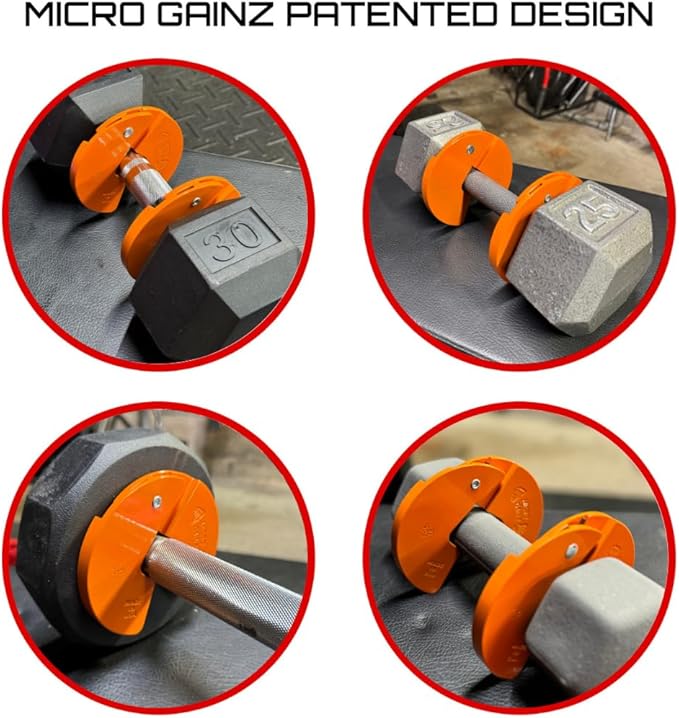 - Space-Saving Precision: Micro Gainz 2-Piece Dumbbell Micro Plate Weight Set – Four 1.25LB micro plates, expertly crafted for a secure fit on most dumbbell handles; Ideal for fractional weight, change plates, and enhancing barbell or weight plate sets; Elevate your workout with precision