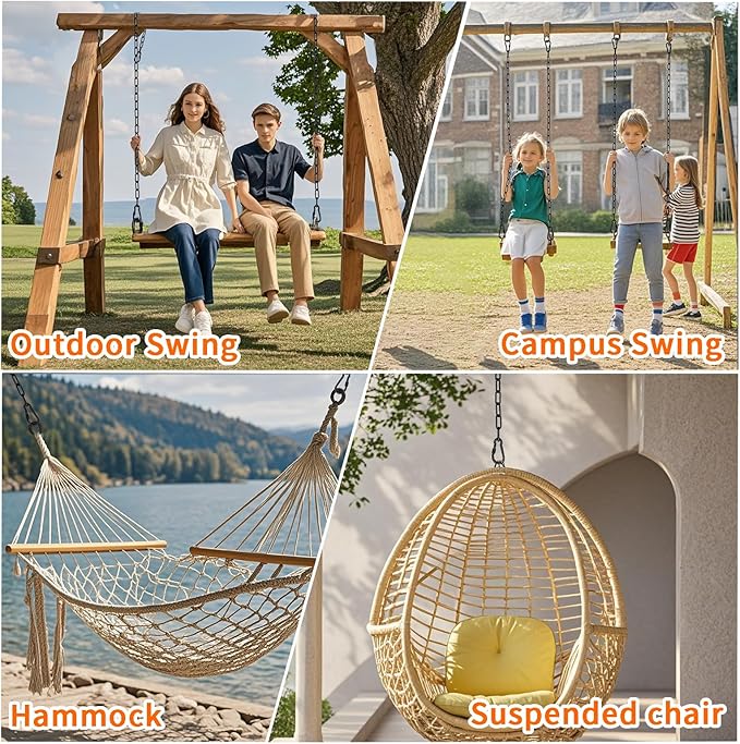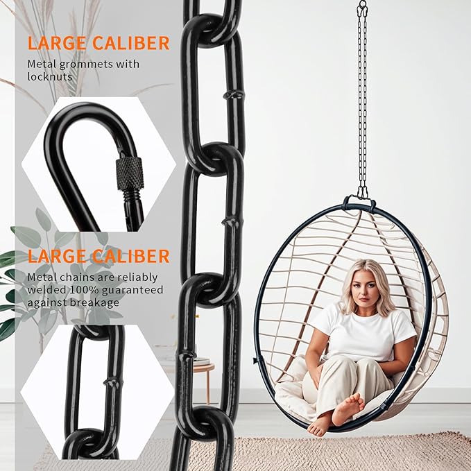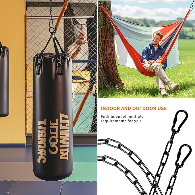 - Versatile Application: Whether you're setting up a cozy corner on your porch, a serene oasis in your backyard, or a peaceful nook indoors, these heavy-duty chains for swings are ideal. Use them for hammock hanging chains, swing set chains, hanging chair chains, or even punching bag chains and hooks, adding charm and relaxation to any space.