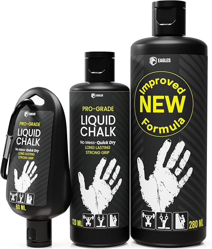 - 60ml + 140ml + 300 ml Liquid Chalk: Eagles liquid chalk 60ml compact, travel-size bottle ensures your grip remains firm and your performance soars. Perfect for on-the-go athletes and fitness enthusiasts seeking reliable grip enhancement.