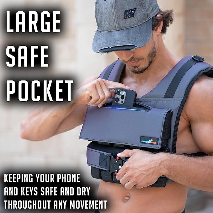 - WEIGHTED VEST - Includes 20 iron weights 10 in front and 10 in back for equal weight distribution. Each weight individually wieghs 2.2lb (1kg). Weight and fit are fully and comfortably ajustable for both men and women.