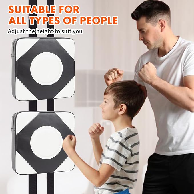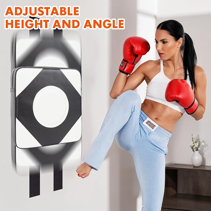 - Adjustable Height & Position: Our boxing pad for wall come with two adhesive strips, you can self-adhesive the boxing pad in any position or different height you want. Adjustable height allow you to practice low kicks, midsection kicks, high kicks and a variety of different knees, easily and naturally