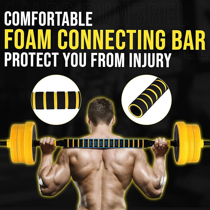 - COMFORTABLE FOAM ROD CONNECTOR: Made of soft foam, the connector can protect your shoulder well when you used as barbells. The dumbbell is with premium PE coating, which is no harm to your body. Filled with different proportions of iron sand, the dumbbell weights are sturdy and long-life use.