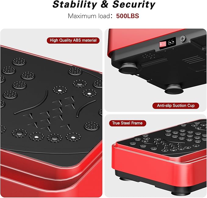- 【Durable and Stable,Silent Exercise】This vibration plates for weight loss is made of impact resistant ABS material, with a load-bearing capacity of up to 500IBS; The bottom is equipped with four anti noise suction cups, which can ensure that you exercise in a quiet environment without disturbing the elderly, children, or busy family members who are sleeping at home. Comes with a factory fuse and circuit overload protection function, making home safer