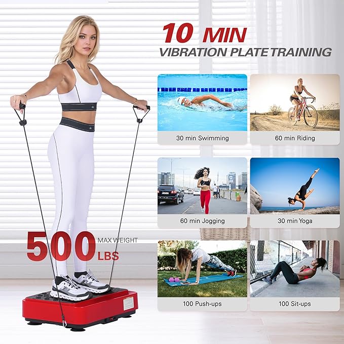 - 【Create Your Dream Body Shape】SOGES vibration plate exercise machine provides you with a new way of exercise that can effectively engage in full body exercises,burn calories,and achieve weight loss effects.Effective vibration exercises can relax muscles,promote blood circulation,and shape your ideal body shape.Whole body vibrations can stimulate and exercise muscles.It can help your body process fat many times faster than running, making your fitness journey easier and more effective