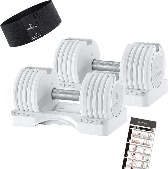 Adjustable Dumbbell Set of 2 25lb White & Booty Band Set Hard Black