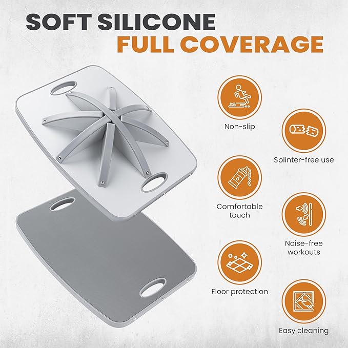- Soft Silicone Full Coverage:Non-slip, comfortable silicone on top, edges, and bottom for splinter-free use, noise-free workouts, floor protection, and easy cleaning