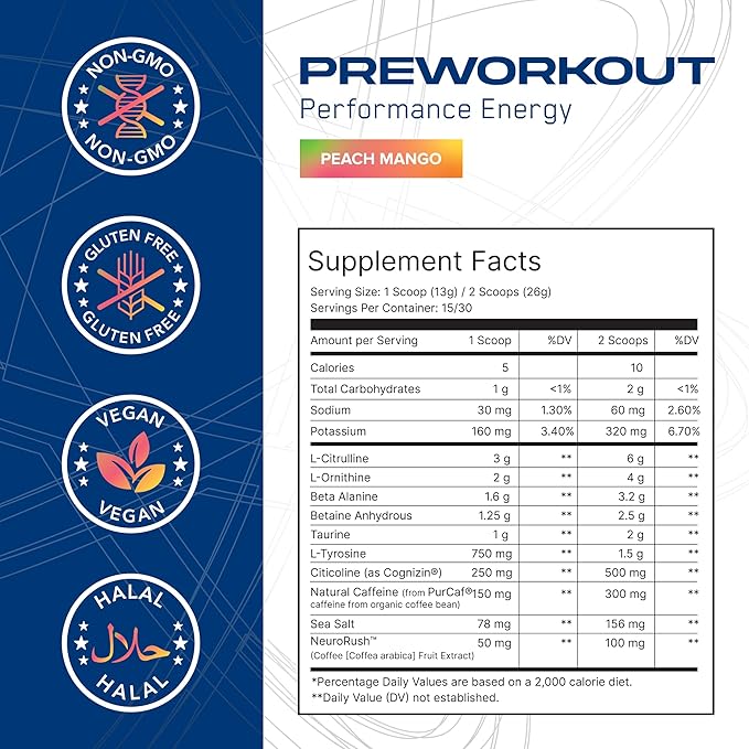 - SATISFY YOUR SWEET TOOTH: Enjoy the satisfying taste of Peach Mango in a formula free from artificial colors or fillers. This zero sugar energy mix is perfect to hit your fitness and diet goals while also satisifying your sweet tooth.