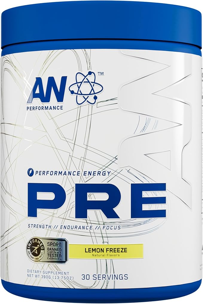 AN Performance Pre-Workout Powder Supplement for Men & Women | Energy Drink Mix with 300mg Caffeine + Beta Alanine + Citrulline | Third-Party Tested | Lemon Freeze | 30 Servings