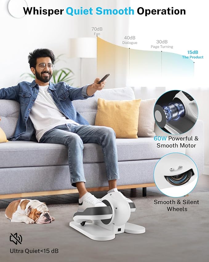 - Whisper-Quiet & Compact Design: The smooth magnetic drive reduces noise & joint strain. Stay active without disturbing others! Anti-slip pedals ensure stability, while the quiet motor (<15 dB) keeps workouts discreet. Ideal for home or office use during breaks, or by the sofa while watching TV