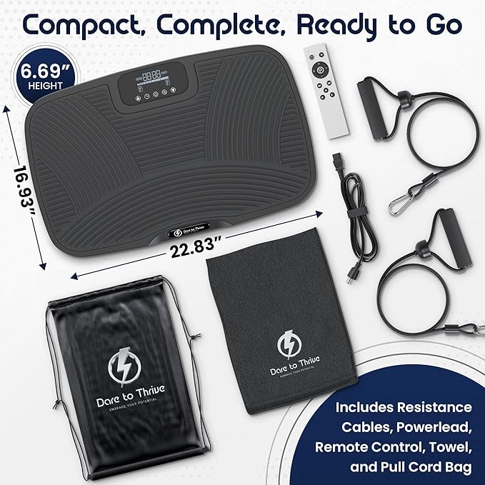 DareToThrive Portable Vibration Plate Exercise Machine - Full Body Vibration Plate Lymphatic Drainage with Resistant Cables - Shake Plate Platform, 240kg Cap Standing Vibration Plates for Weight Loss