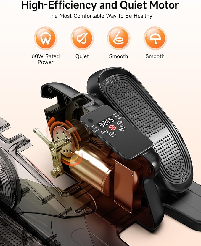 - 【Low Impact & Elderly-Friendly】 Electric under desk elliptical's low-impact, zero-pr essure design ,helps to stimulate blood circulation, strengthen lower body muscles, enhance mobility; Suitable for office workers, the elderly and those who need leg rehabilitation. It also can improves heart health, promotes leg adaptation, speeds up the recovery process, and builds muscle strength.No assembly required; lightweight with a built-in handle for easy transport and compact for convenient storage.