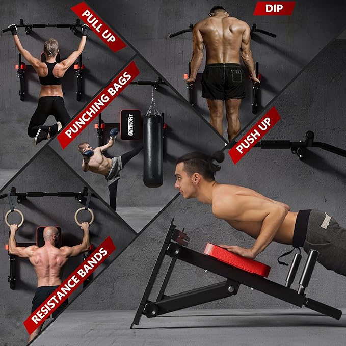 - Ergonomic Design: The package contains a wall mounted pull-up bar and dip tower, which can be easily disassembled when boxing, saving space and money with an all-in-one device. The non-slip handles provide comfort during exercise. The padded back and arm pads provide comfort when exercising the abdomen, waist, chest and upper limbs, while also reducing damage to the wall during exercise.