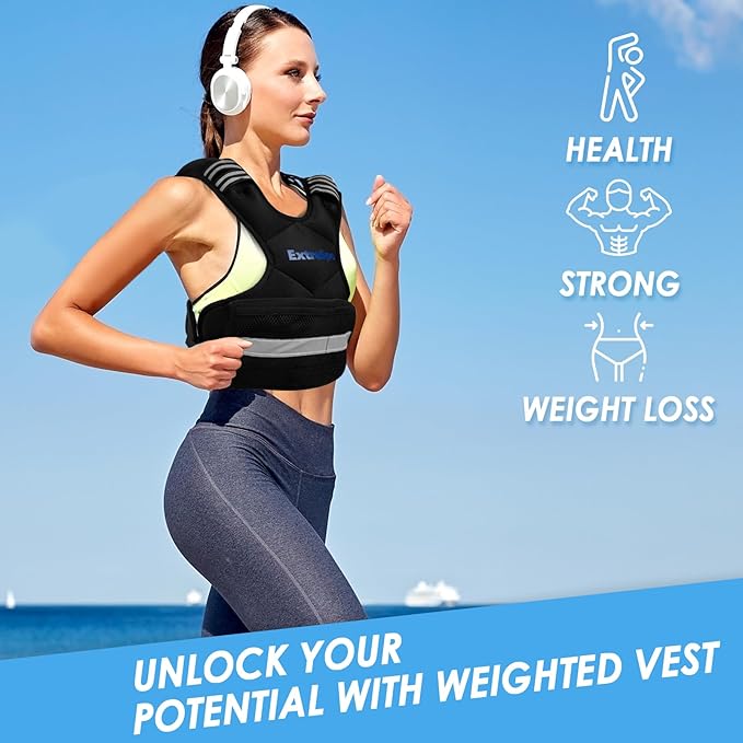 - ADJUSTABLE WEIGHTED VEST: This one-size-fits-most exercise vest by ExtreSpo weighs in at 4 pounds by itself but reaches up to 10 thanks to the included six 1 pound iron sand weight bags, so you can add or remove them at any time to adjust strength and efficiency as you progress