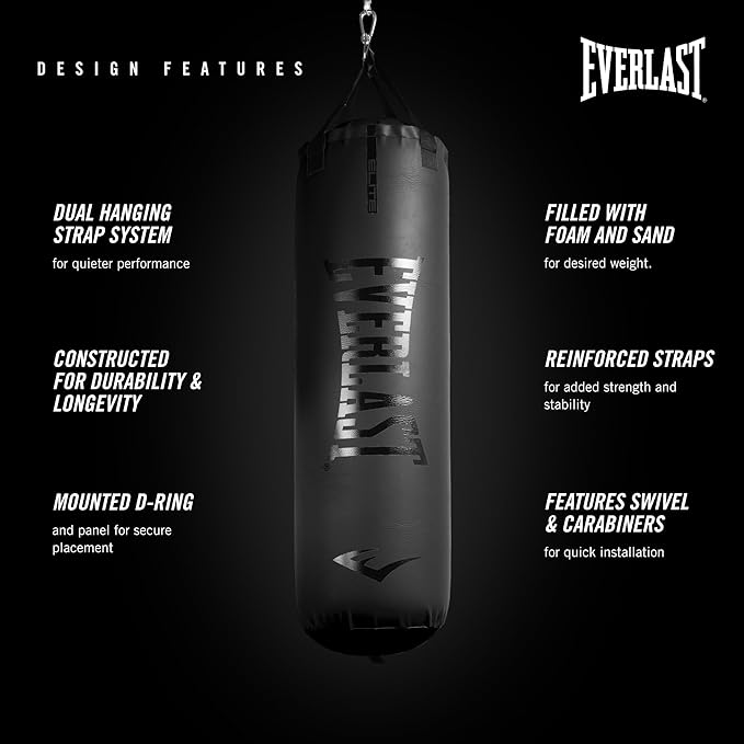 Everlast Elite 2 & Prime Punching Bag – Durable PVC Boxing Bag & Equipment for MMA, Kickboxing, Muay Thai, Home Gym Training