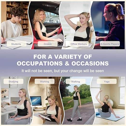 - FOR A VARIETY OF OCCASIONS & OCCUPATIONS: Whether you are working/ studying/ driving/ doing housework/ walking/ picnicking/ shopping, etc., our back brace posture corrector are perfect for you. Our posture corrector for women and men can be worn on the outside or in, and you just need to wear a loose coat to hide perfectly. You can wear this back support to do whatever you want (except sleep) without wasting any extra time. Change is happening, it won't be seen, but your change will be seen.