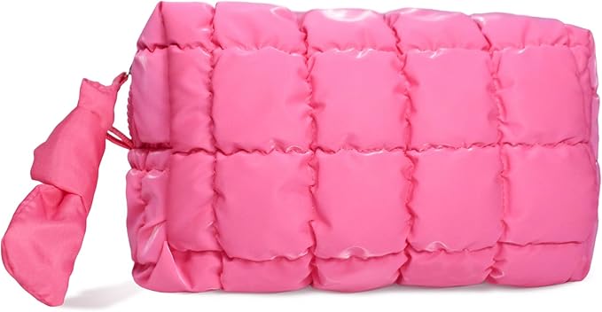 Quilted Makeup Bag, Puffy Cosmetic Organizer, Travel Toiletry Bag, Hot Pink Puffer Makeup Pouch