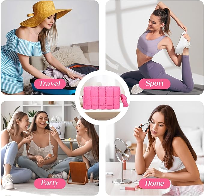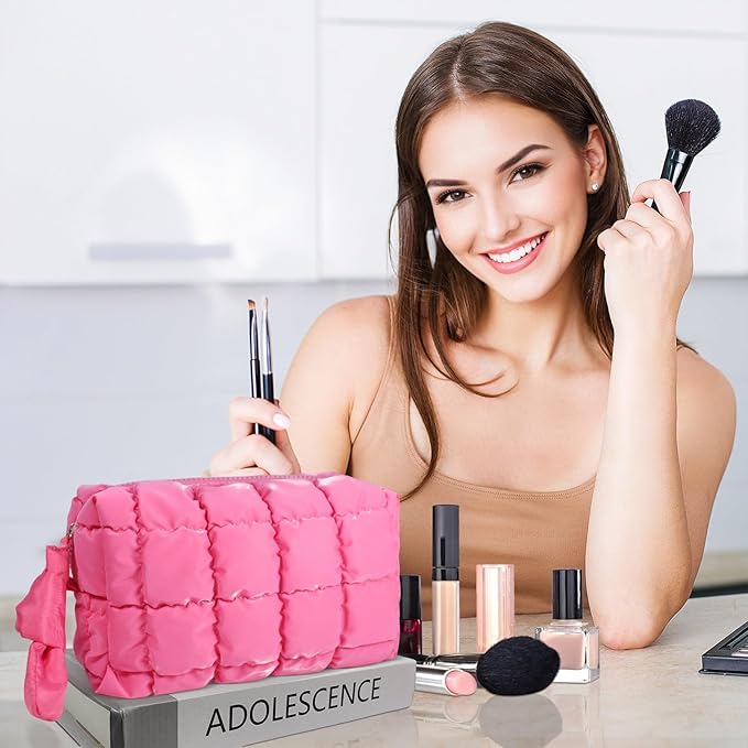 - Quilted Design: The puffy makeup bag featuring a chic quilted pattern and a soft pillow texture, ensuring both style and comfort.The top adopts smooth metal zipper, durable and convenient