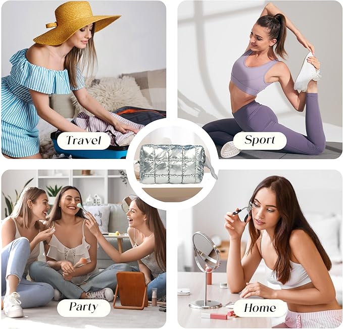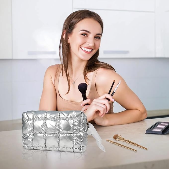 - Quilted Design: The puffy makeup bag featuring a chic quilted pattern and a soft pillow texture, ensuring both style and comfort.The top adopts smooth metal zipper, durable and convenient