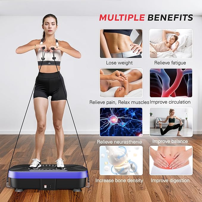 - 【Efficient Fat Burning】Step onto Soges vibration plate exercise machine and sculpt your ideal figure instantly! The vibration plate stimulates muscles through high-frequency vibrations, inducing additional muscle contractions and activation. This helps burn calories and fat rapidly, aiding in shedding excess weight faster than running, helping you achieve your fitness goals swiftly.