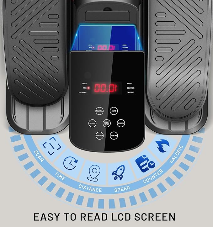 - ·【LCD Display & Remote Control】Track your progress effortlessly with the clear, easy-to-read LCD screen, showing time, distance, speed, calories burned, and pedal count. The included wireless remote allows you to adjust settings like speed and mode without bending over, making it comfortable and convenient for everyday use.