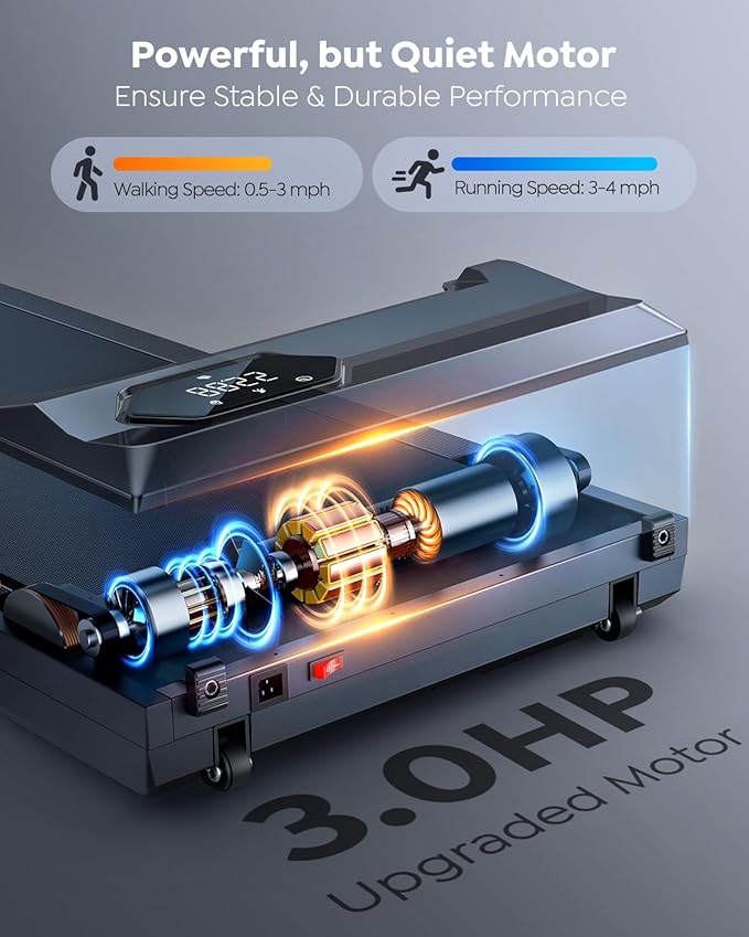 - 【Upgraded 3.0HP Quiet Motor】Incline walking pad efficient and quiet motor ensures a smooth walking experience. The walking pad operates at less than 45 dB, allowing you to walk while attending webinars, taking conference calls, or chatting with family, without any noise distractions. Speed range: 0.5-4.0 MPH, catering to different walking needs.