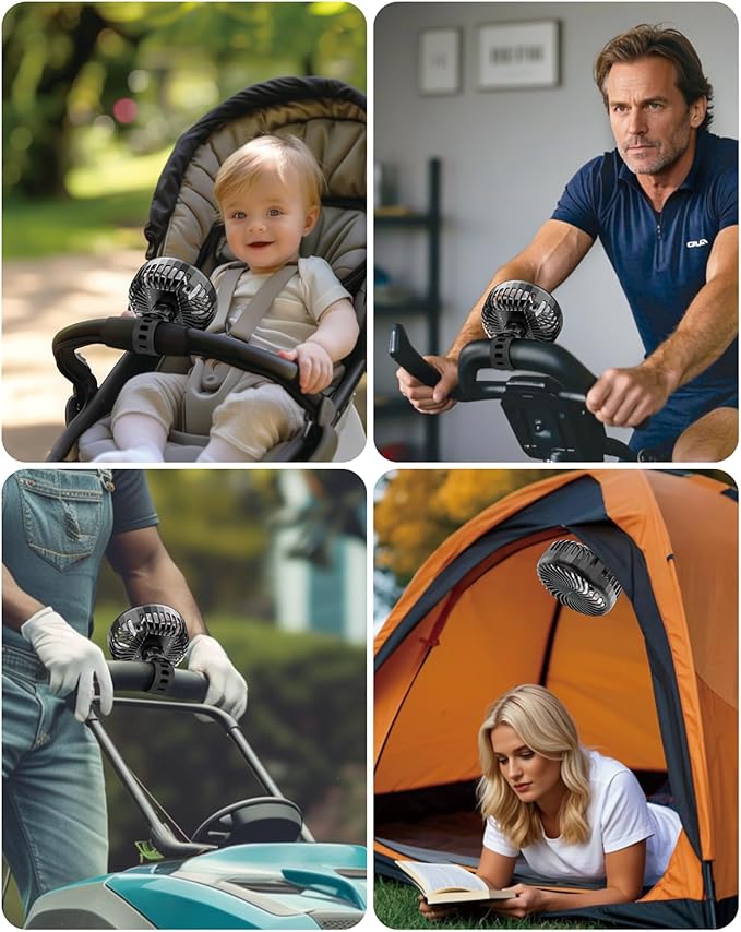 - Unmatched Wind Power & Adjustable Speeds: Experience a turbocharged breeze with a 4000 RPM brushless motor and aerodynamic blades, delivering a rapid 13.2 ft/s airflow velocity. Customize your cooling with 3-speed settings—gentle, refreshing, or turbo—for instant relief during workouts or relaxing moments.