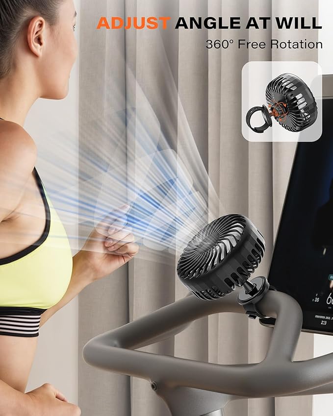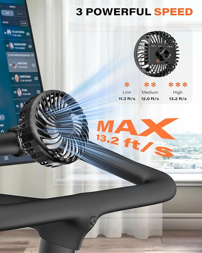 A2C Rechargeable Fan for Peloton Bike & Exercise Bike - 4000mAh Portable Fan with Adjustable Strap, 3 Speed Settings, 360° Rotation - Fits 0.5-1.5" Handlebars for Treadmill, Stroller, Golf Cart, Gym