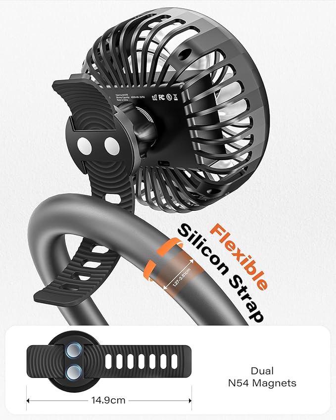 - Rechargeable & Long-Lasting 4000mAh Battery: Enjoy up to 6 hours of cooling on the lowest setting and 4 hours on the highest setting. Fully charges in just 5 hours, ensuring your fan is ready whenever you need it. Plus, you can use it while charging, so you never have to worry about running out of power.