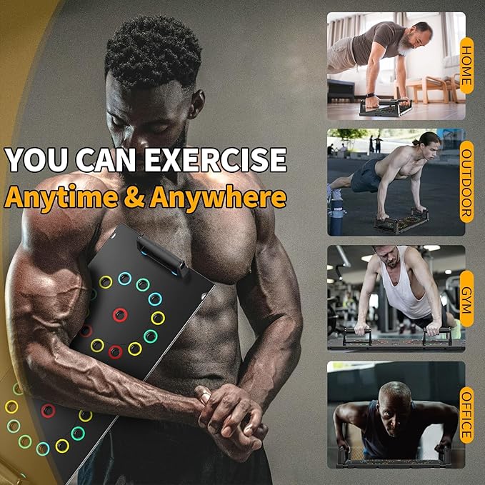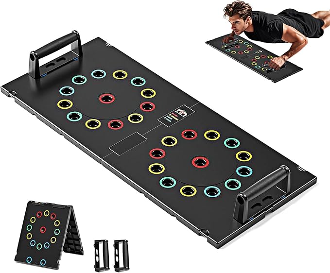 - Foldable & Portable: This push up board folds easily for storage and portability. Compact and lightweight, it allows you to take your workouts anywhere, making it perfect for home, gym, or travel fitness sessions