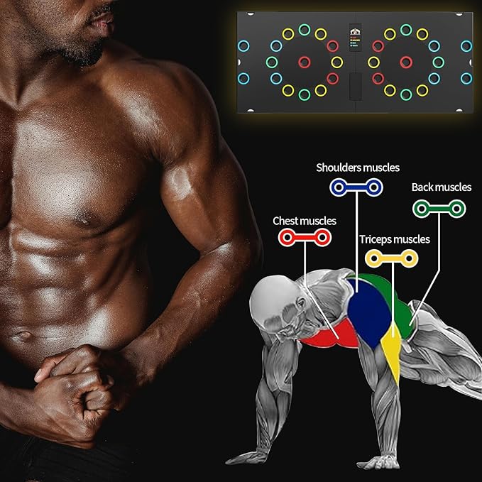 - Targeted Muscle Focus: This push up board for men uses a color-coded system to target specific muscles: red for chest, yellow for shoulders, blue for the back, and green for triceps. A game-changing tool for precise and effective training
