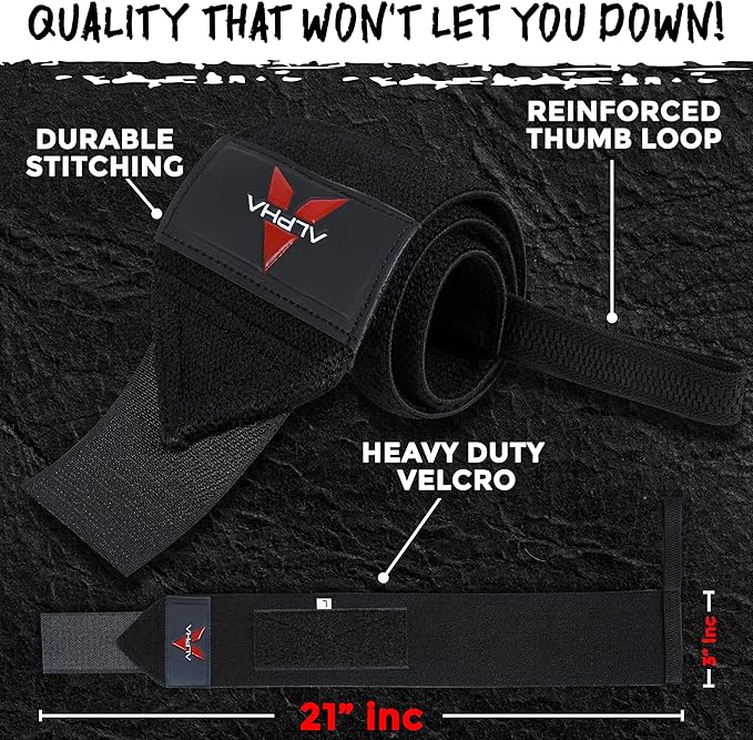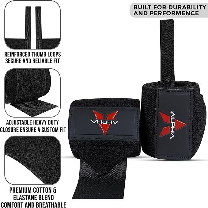 Alpha Sports Wrist Wraps for Weightlifting,Gym Exercise,Adjustable,Durable for Crossfit,Powerlifting, Bodybuilding, and Fitness Workouts,Enhanced Stability for Lifting,Training
