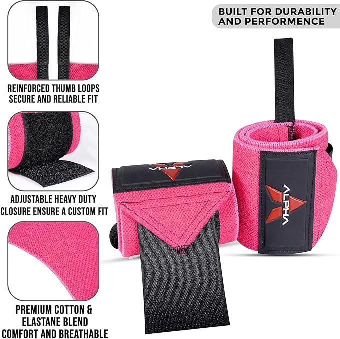 - PERFECT FOR WORKOUT: Our alpha wrist wraps are ideal for a variety of workouts, including weightlifting, strength training, powerlifting, bodybuilding, cross-training, and exercises such as clean & jerk, shoulder press, bench press, squat, deadlift, and other push or gripping power movements. Wrist wraps are an essential accessory for workouts, providing optimal wrist support for enhanced performance.