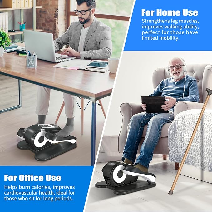 - Quiet and Portable: This under-desk elliptical machine uses advanced silent technology, ensuring quiet operation even at high speeds, making it perfect for office/home use without disturbing colleagues/families. Designed with a handle for easy portability. Lightweight, and easy to move to living room, bedroom, or garden. Perfect for those with back issues.
