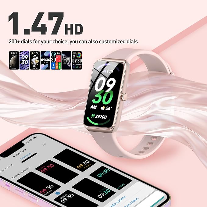 - 【1.47" HD Touch Screen】This fitness watch is designed with curved glass and 1.47" TFT full screen with bright colors, comfortable and smooth control, outstanding visual effect, with personalized dial, whether you wear the sport watch on a daily basis or for sports and fitness, you can be the focus of the attention and show your personality and taste.