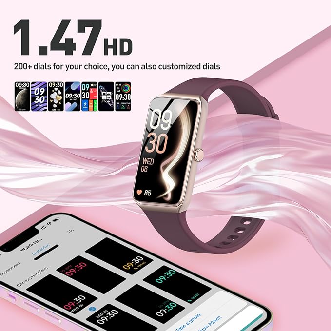- 【1.47" HD Touch Screen】This fitness watch is designed with curved glass and 1.47" TFT full screen with bright colors, comfortable and smooth control, outstanding visual effect, with personalized dial, whether you wear the sport watch on a daily basis or for sports and fitness, you can be the focus of the attention and show your personality and taste.